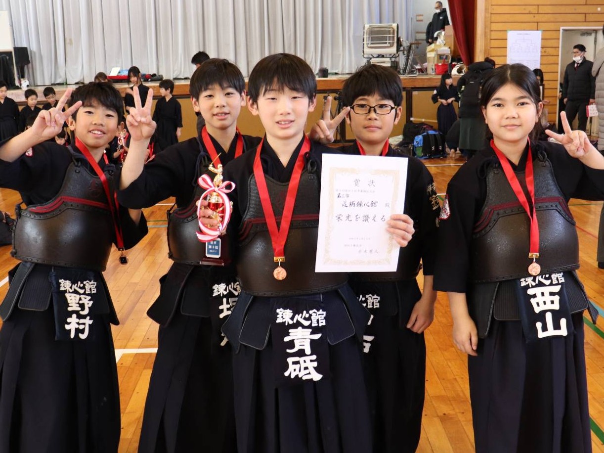 錬心館はBリーグ、強豪チームの旨を借りて果敢に攻め、リーグ3勝1分けで1位通過、決勝トーナメントの進出しました。トーナメント1回戦でも勢いそのままに勝利、準決勝で剣心館道場さんに敗れましたが、この大会で初めて入賞する事が出来ました。